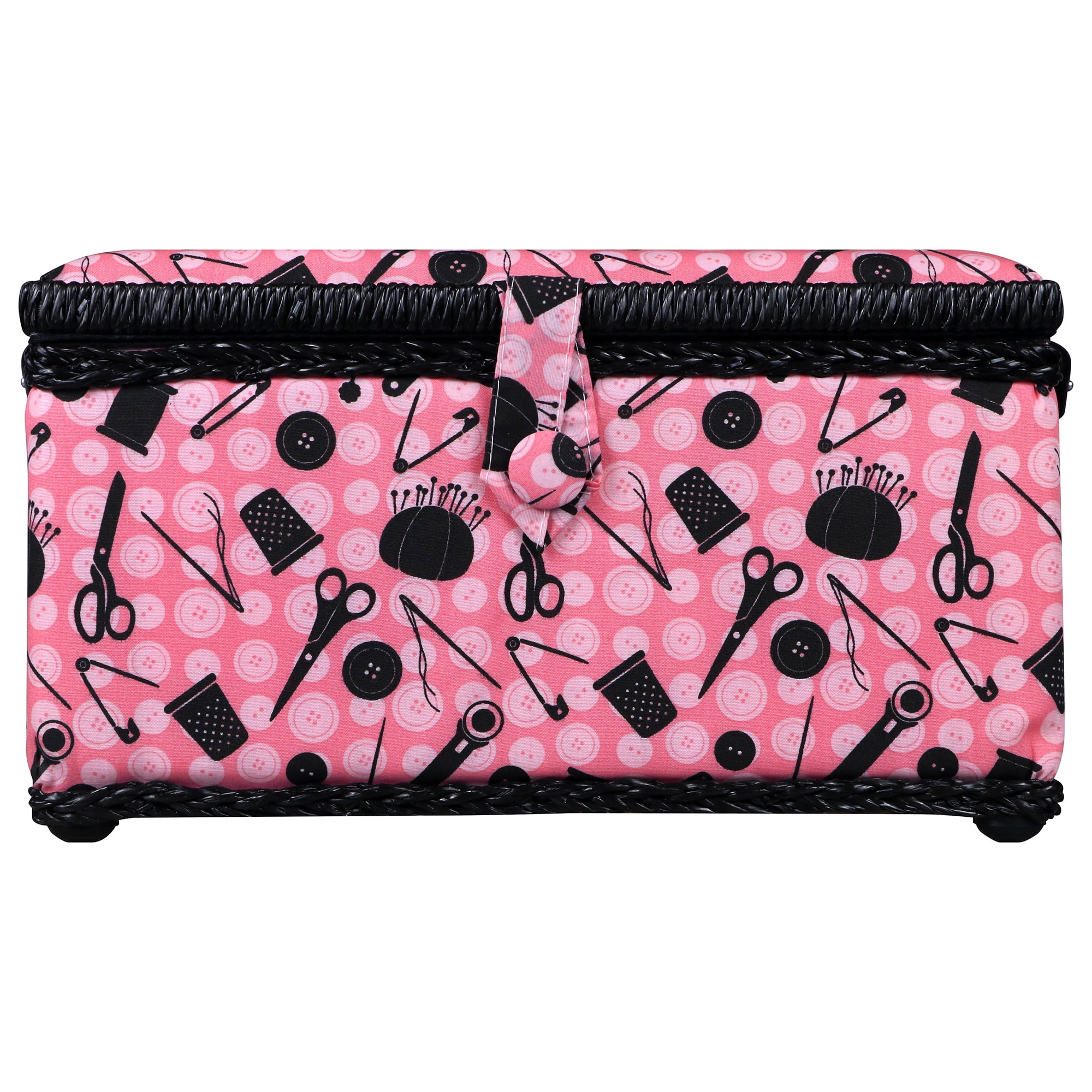 Singer Large Sewing Basket Includes Essential Sewing Accessories And Notions Black Pink Print 126 Pieces Sewing Kit Storage And Organizer Walmart Com